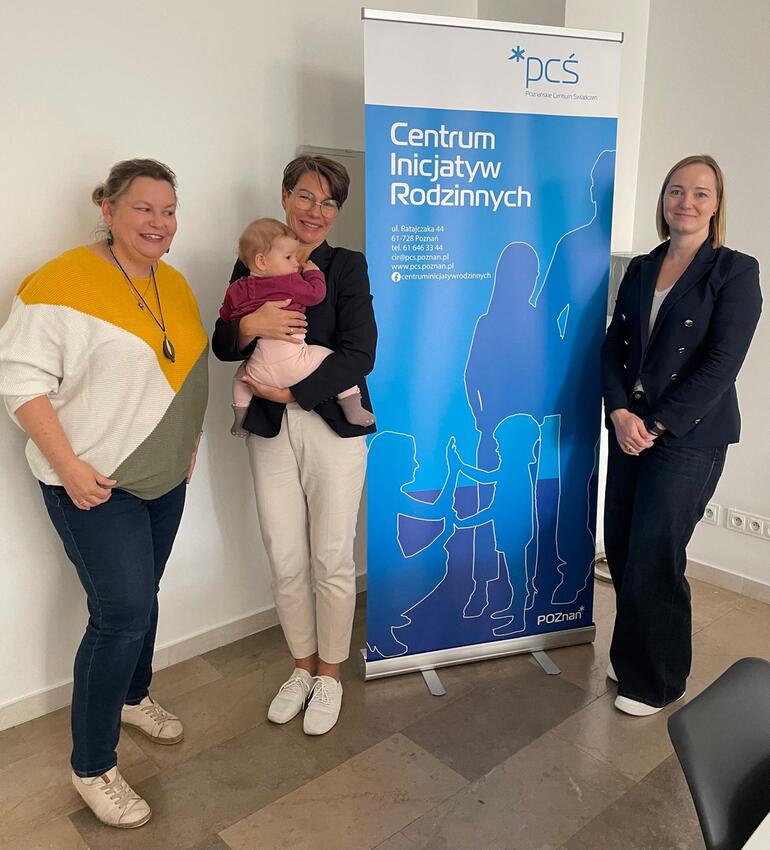 Kolejny dzień to spotkanie w Poznaniu –  w Centrum Rozwoju Inicjatyw z Panią Dyrektor Urszulą Mańkowską, pochodzącą z wielodzietnej rodziny. Pani Urszula jest członkiem Rady Rodziny w Poznaniu i osobą znająca struktury oraz naszych ludzi w terenie.  Mieliśmy możliwość zobaczenia wyjątkowej przestrzeni dedykowanej rodzinom i mamom z małymi dziećmi. Atmosfera tego miejsca jest faktycznie niezwykle ciepła i przyjazna rodzinie. Poznański CIR to miejsce, w którym mamy przychodzą wypełnić wniosek o Kartę Dużej Rodziny, a kiedy nie są w stanie fizycznie przyjść  i odebrać kartę, w tym celu, pracownik -  pan Mariusz – osobiście wybiera się do domów z dokumentami. W CIRze pokazano nam słyną "komfortkę", czyli odosobnione miejsce przewijania i karmienia małych dzieci, dostosowane również do przewijania osób niepełnosprawnych, z którego mogą korzystać wszyscy przebywający w okolicy. Długo rozmawialiśmy o możliwych sposobach współpracy i promocji Związku Dużych Rodzin w tej niezwykłej przestrzeni, a także o współpracy z Kołem Poznań.  Mamy nadzieję, że już wkrótce odbędą się tutaj spotkania z nowo pozyskanego projektu przez Elżbietę Majkę na rzecz rozwoju lokalnego wolontariatu.