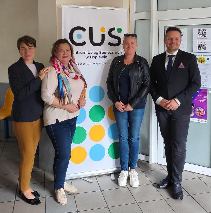Następnym naszym przystankiem w podróży po Wielkopolsce była gmina Dopiewo, gdzie na spotkanie w Centrum Usług Społecznych zaprosiła nas Pani Dyrektor Magdalena Popłońska-Kowalska, Wicewójt Mikołaj Tomaszyk wraz z pracownikami oraz Dorota Tomaszczenik, która z ramienia koła ZDR 3 Plus działa i współpracuje z gminą.  CUSy, to jednostki, które powstają z  Miejskich Ośrodków Pomocy Społecznej i dzięki którym samorząd może skuteczniej docierać do ludzi pracując z większym otwarciem na inicjatywy oddolne, stowarzyszenia. Spotykaliśmy się z wdzięcznością za dotychczasową współpracę i z otwartością na oficjalne partnerstwo ze Związkiem jako organizacją działającą w terenie. Tutaj ponownie Elżbieta Majka podzieliła się opowieściami o działaniach i realizowanych projektach w całym oddziale; o Tygodniu Małżeństwa, o grze miejskiej „Przygoda z tatą". Pan Wójt dał zielone światło Pani Dyrektor na działania z nami i dalszą promocję naszej marki wśród dopiewskich rodzin.